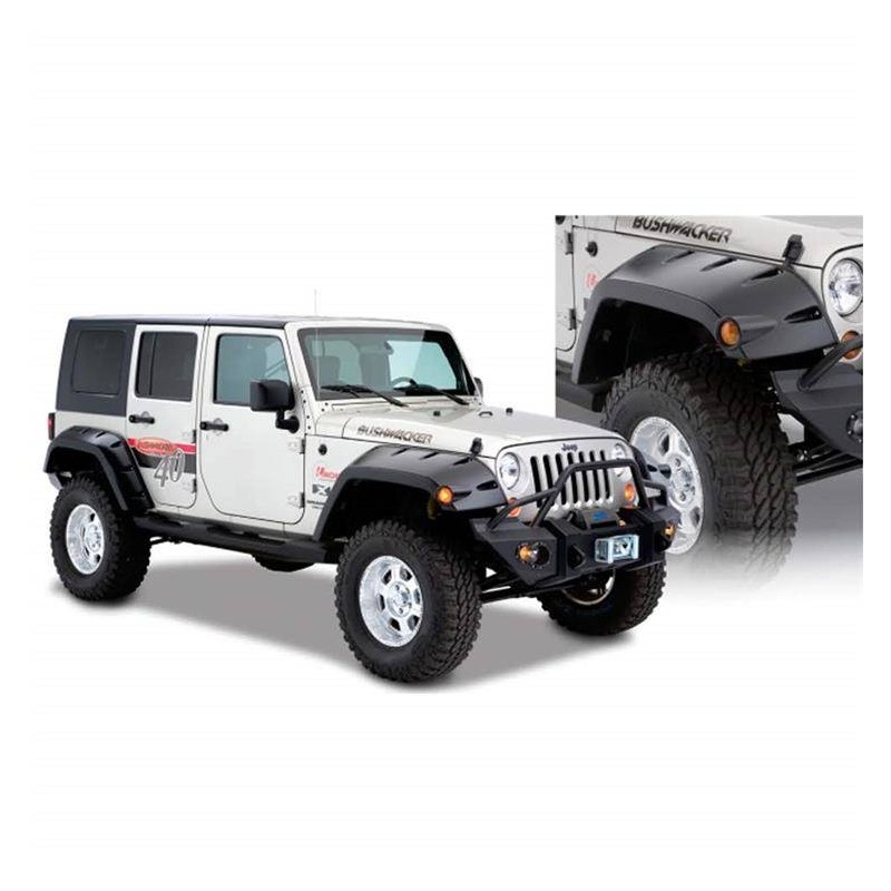 Parafanghi posteriori Bushwacker Pocket Style - Jeep Wrangler JK 4 Razzi posteriori, svasatura posteriore Copertura pneumatici: 6,75 pollici, svasatura posteriore Altezza: 5,75 pollici, integrano pneumatici sovradimensionati e kit di sollevamento ad alto gioco, finitura nera opaca stile, può essere verniciato, realizzato negli Stati Uniti dal nostro spesso e proprietario Dura-Flex® 2000 TPO, è il materiale più spesso e flessibile disponibile, si installa facilmente utilizzando i fori di fabbrica esistenti,