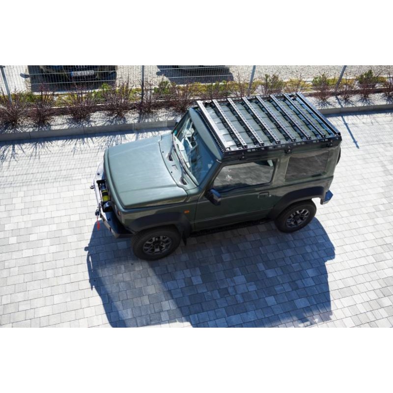 Il bagagliaio / pianale da tetto senza rete dedicato alla SUZUKI JIMNY IV 1.5 PETROL 18-. Il tronco è realizzato in lamiera d'acciaio con uno spessore di 1,5 e 3 mm . Il prodotto viene prima tagliato al laser, quindi piegato su una pressa piegatrice CNC e durante la finitura manuale si ottiene la forma corretta . La fase successiva è la protezione anticorrosione consistente nell'applicazione di un primer in polvere di zinco e la verniciatura a polvere che conferisce al tronco il suo aspetto finale. Il prodotto è completamente attorcigliato, faciliterà sicuramente il trasporto di bagagli più grandi o di oggetti di grandi dimensioni per i quali non c'è spazio all'interno dell'auto.