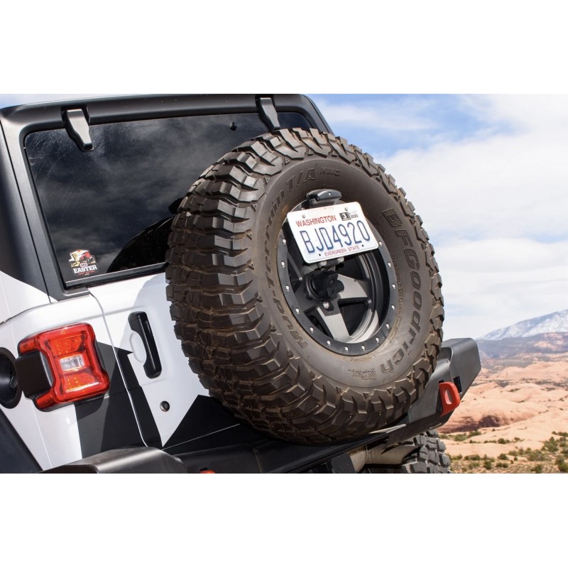 Supporto per targa di riposizionamento sulla ruota di scorta per Jeep Wrangler JL / JLU. Include il nuovo cablaggio, la luce targa e la minuteria di montaggio. È possibile montare qualsiasi formato di targa.
