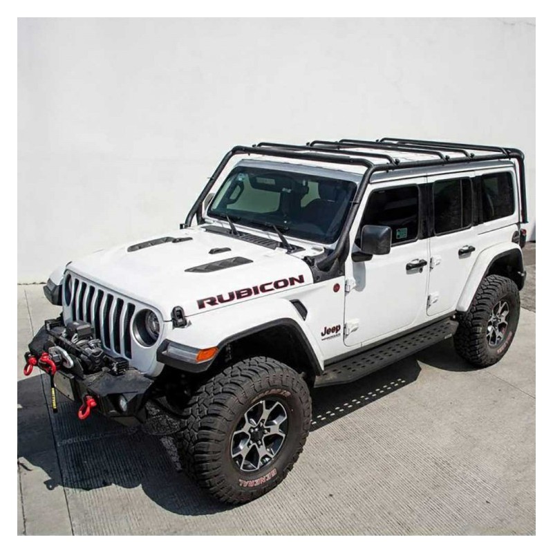 Questo prodotto è realizzato in acciaio resistente e protegge meglio il veicolo da fattori esterni. Il portapacchi è montato nella parte anteriore nel cofano motore e nella parte posteriore sotto l'hard top. Questa fantastica soluzione ti consentirà di portare con te tutti gli oggetti e gli accessori necessari durante le spedizioni fuoristrada. Oltre al suo utilizzo pratico, il portapacchi aggiunge un aspetto fantastico e un carattere fuoristrada .