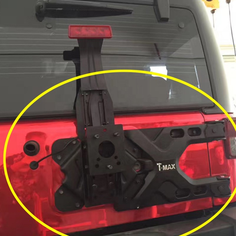 Supporto ruota di scorta rinforzato T-MAX per Jeep Wrangler JK completo di staffa per terzo stop. Acciaio verniciato a polvere.