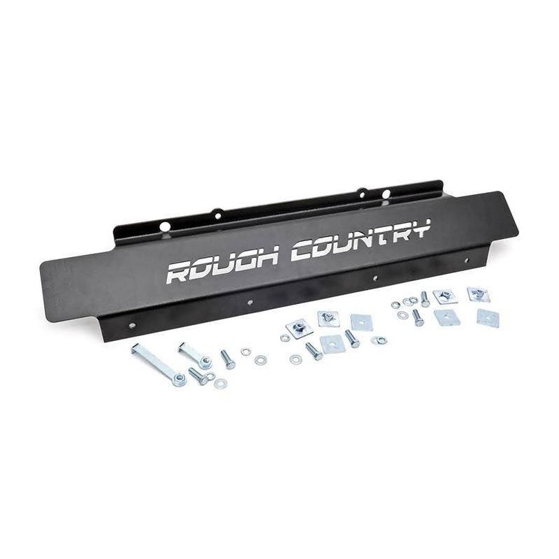 Piastra paramotore anteriore Rough Country per Jeep Wrangler JK realizzata in resistente lamiera d'acciaio da 50 mm, facile installazione, sostituisce la piastra paramotore di plastica economica, logo Rough Country,